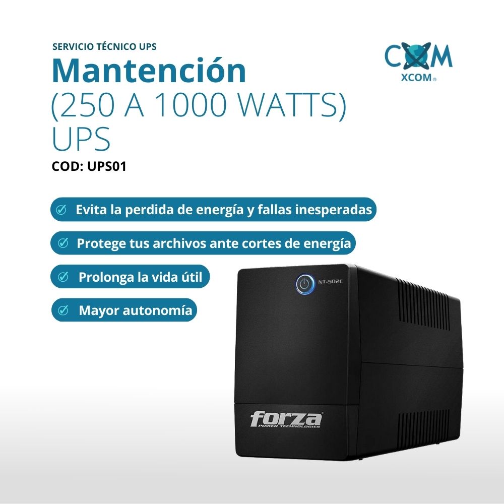 Pulgadas Necesitas mantener tu UPS de 250 a 1000 watts en óptimas condiciones Ofrecemos un servicio de mantención para que tu equipo esté siempre listo para proteger tus dispositivos electrónicos en caso de cortes de energía. Nuestro servicio incluye la limpieza interna y externa de la UPS, reemplazo de baterías si es necesario, revisión y reparación de componentes eléctricos y electrónicos, y pruebas de funcionamiento para asegurarnos de que tu UPS esté en perfecto estado de funcionamiento. Contáctanos y deja que nuestros expertos cuiden de tu equipo.-