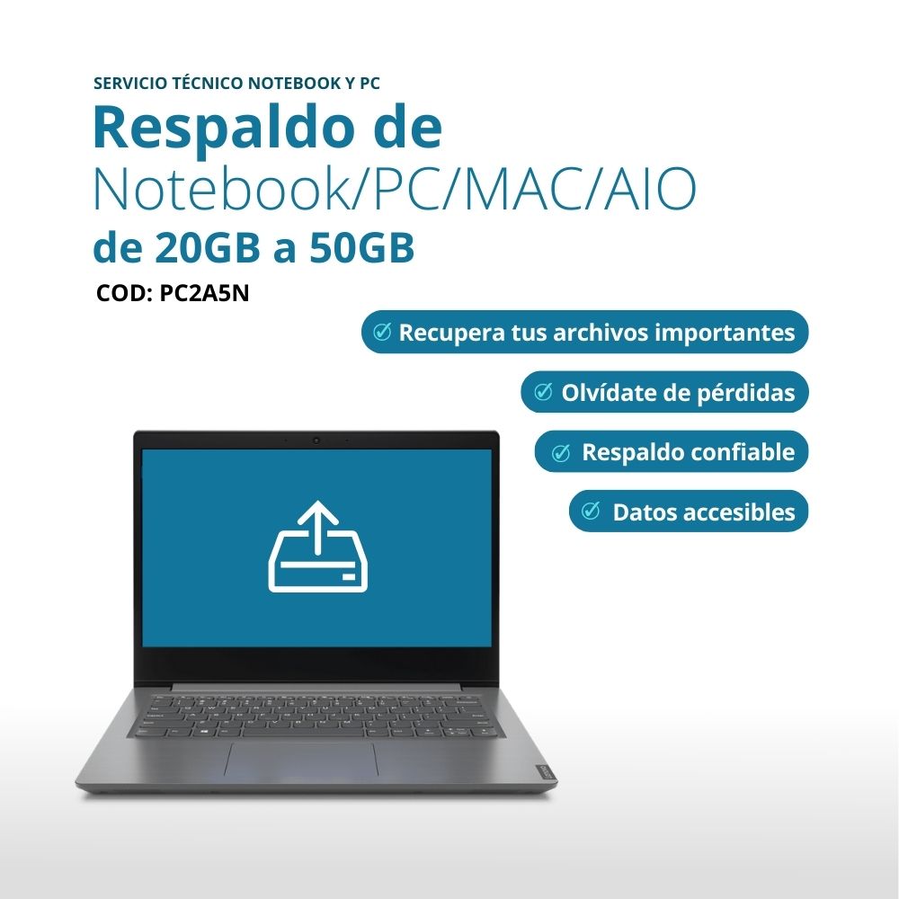 Respaldo de Notebook-PC-MAC-AIO de 20 a 50GB. Podrás respaldar todos tus archivos importantes de tu notebook o PC sin preocupaciones. Olvídate de la pérdida de información en caso de un fallo técnico o fisíco de tu dispositivo.